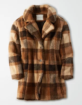 Faux Sherpa Plaid Coat